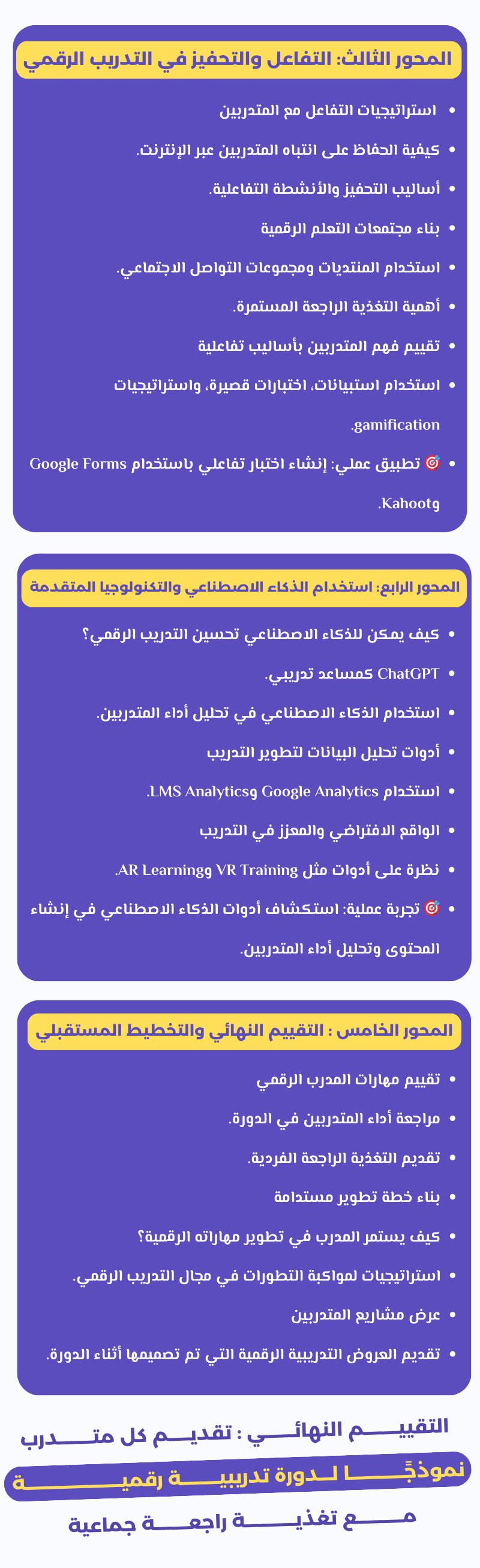 منتدى دورة إعداد المدرب الرقمي هي مجموعة على الواتساب الهدف منها مواكبة المتدربين طيلة الأسبوع كما أنها فرصة لتبادل الخبرات بين المتدربين